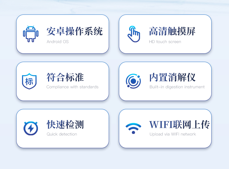 5、便攜一體式檢測(cè)設(shè)備,內(nèi)置大容量鋰電池,可一機(jī)實(shí)現(xiàn)戶外水樣消解、測(cè)定。