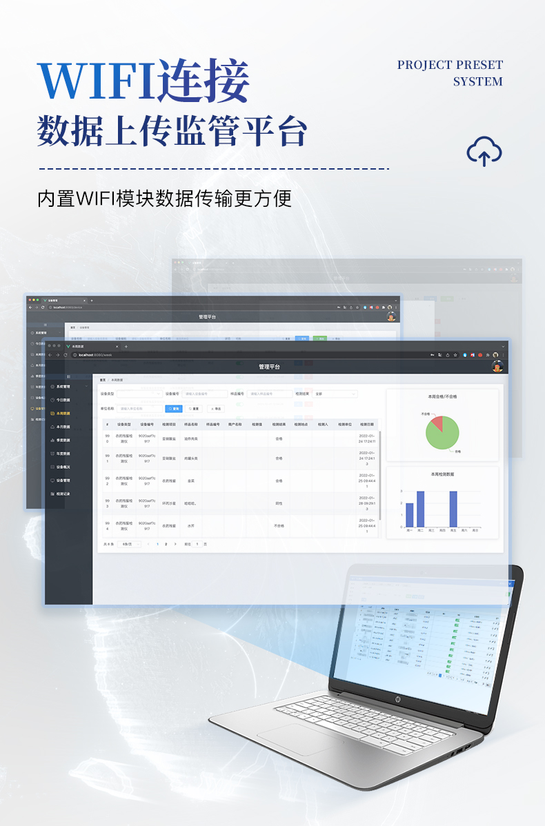 7、儀器具有WIFi無(wú)線、4G遠(yuǎn)傳和RJ45有線聯(lián)網(wǎng)功能,將數(shù)據(jù)上傳;