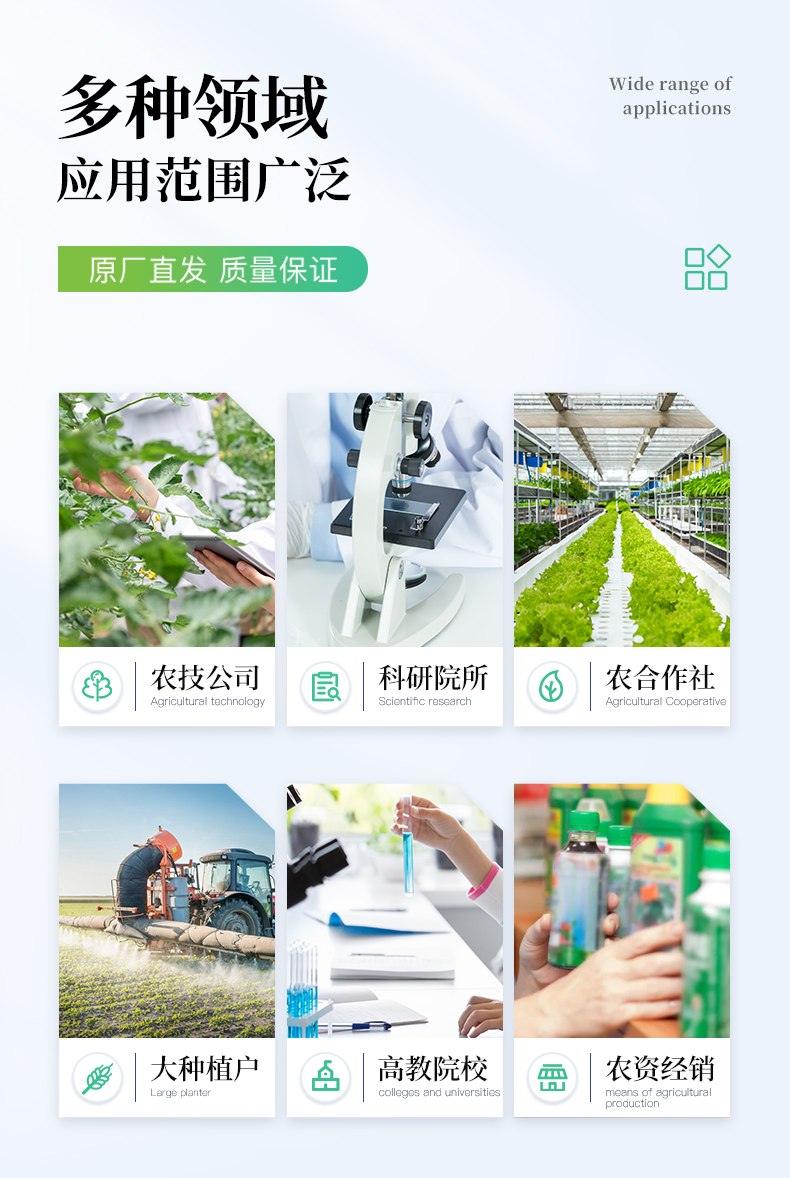 肥料養分:● 單質化肥中的氮、磷、鉀; ● 復(混)合肥及尿素中的銨態氮、磷、鉀; ● 有機肥中速效氮、速效磷、速效鉀、全氮、全磷、全鉀、pH、有機質等。