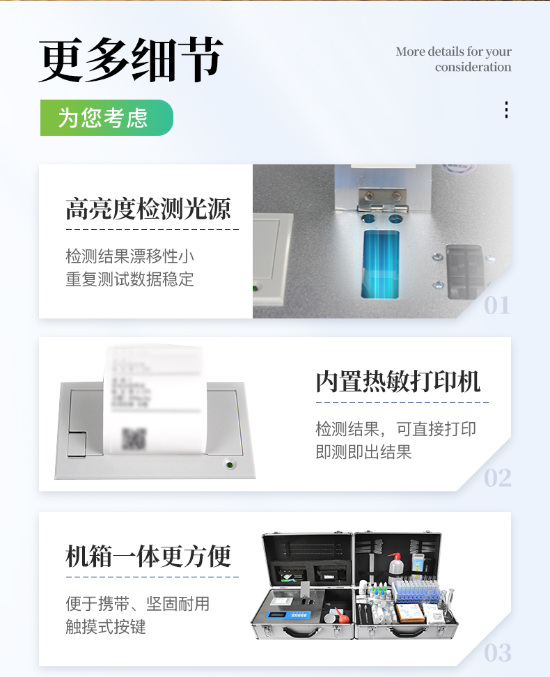 1、《機箱/藥劑一體式鋁合金機箱》設計,便于攜帶、堅固耐用,配套成品藥劑。