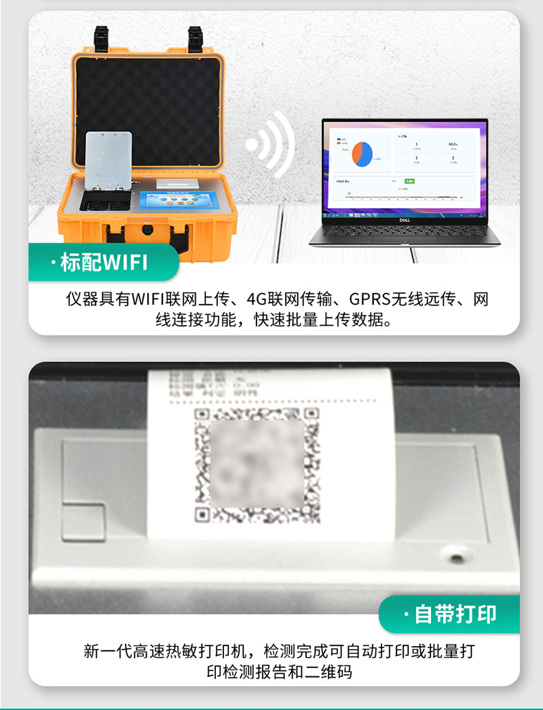 3、新一代高速熱敏打印機(jī),檢測完成可自動打印或批量打印檢測報告和二維碼。