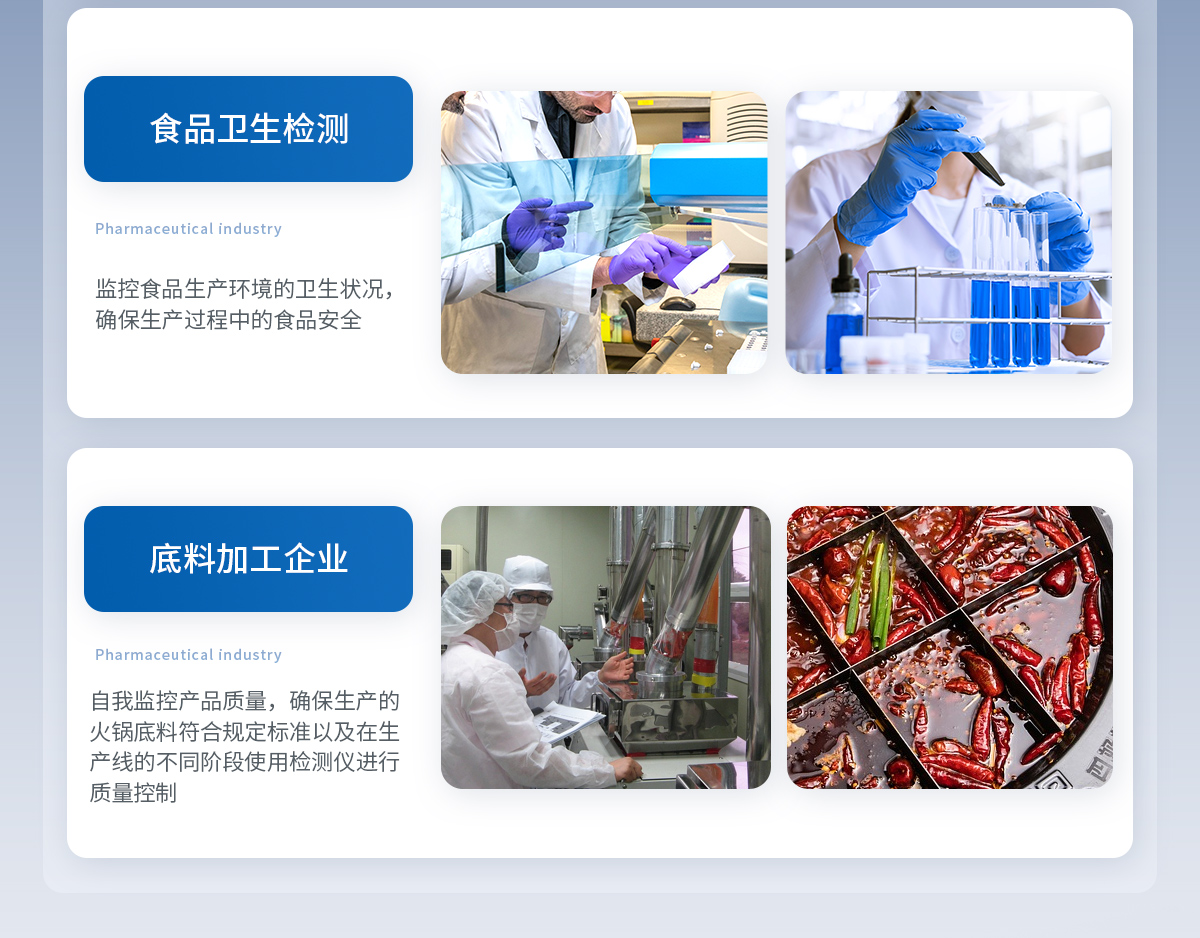 可現場快速檢測底料中非食用化學物質、濫用食品添加劑、農藥殘留、獸藥殘留、重金屬、抗生素類殘留、激素類殘留、毒素類殘留、化學類殘留等多項目的快速定性定量檢測。如底料中的山梨酸鉀、苯甲酸、甜蜜素、安賽蜜、黃曲霉B1等快速檢測。 該多功火鍋底料檢測儀為集成化食品安全快速檢測分析設備,廣泛應用于食藥監局、衛生部門、底料加工、工商執法等單位使用。