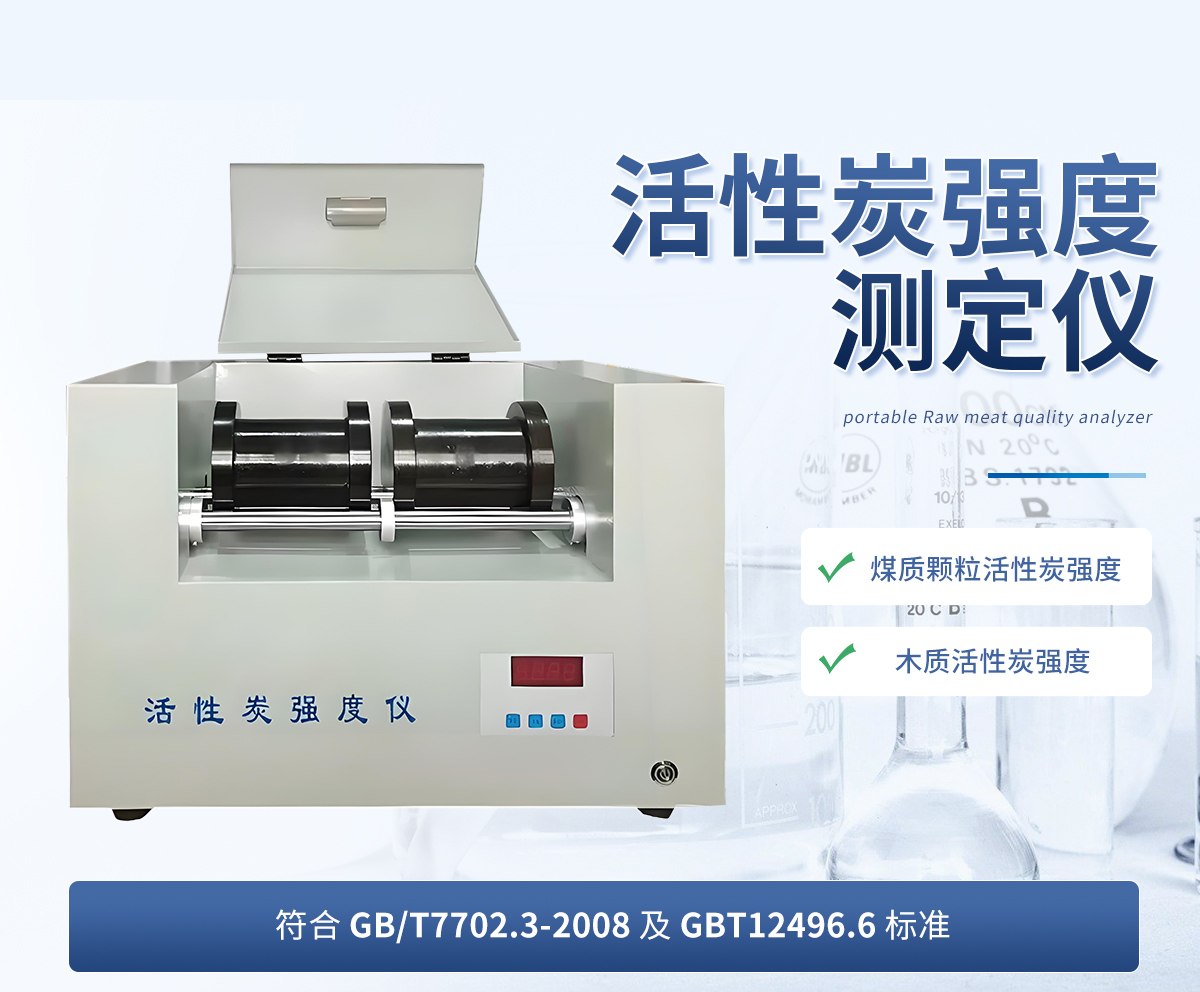 活性炭強度測定儀儀按照規(guī)定的試驗條件,將活性炭試料置于裝有鋼球的滾筒中,開啟強度測定儀,開始計時,通過滾筒的機械運動,試料被磨損,測定被破壞試料粒度的變化情況,用保留在試驗篩上的試料質量占原試料的質量分數(shù),可求出活性炭試樣的強度。