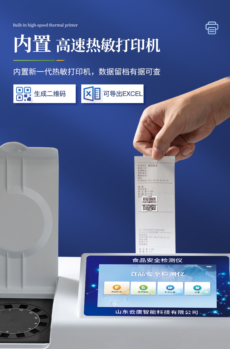 1、儀器采用臺式一體化系統(tǒng)檢測技術,將分光光度模塊、數(shù)字化管理模塊、無線通訊模塊高度集成于一體,支持檢測幾十種食品安全檢測項目,同時預留升級檢測方法。