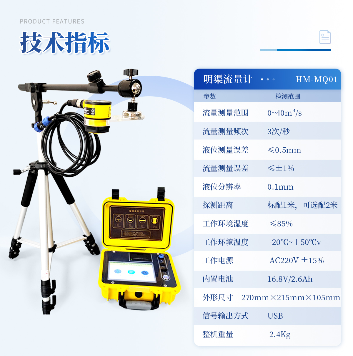 明渠超聲波流量計 YT-MQ01 技術指標: