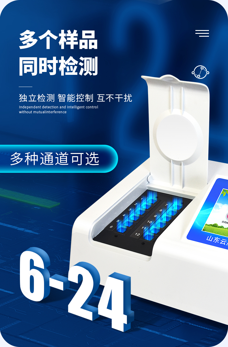 4、檢測通道:24個檢測通道,可以同時測試多個樣品,循環檢測,即放即檢,每個樣品由程序控制分別獨立工作,不會互相干擾。
