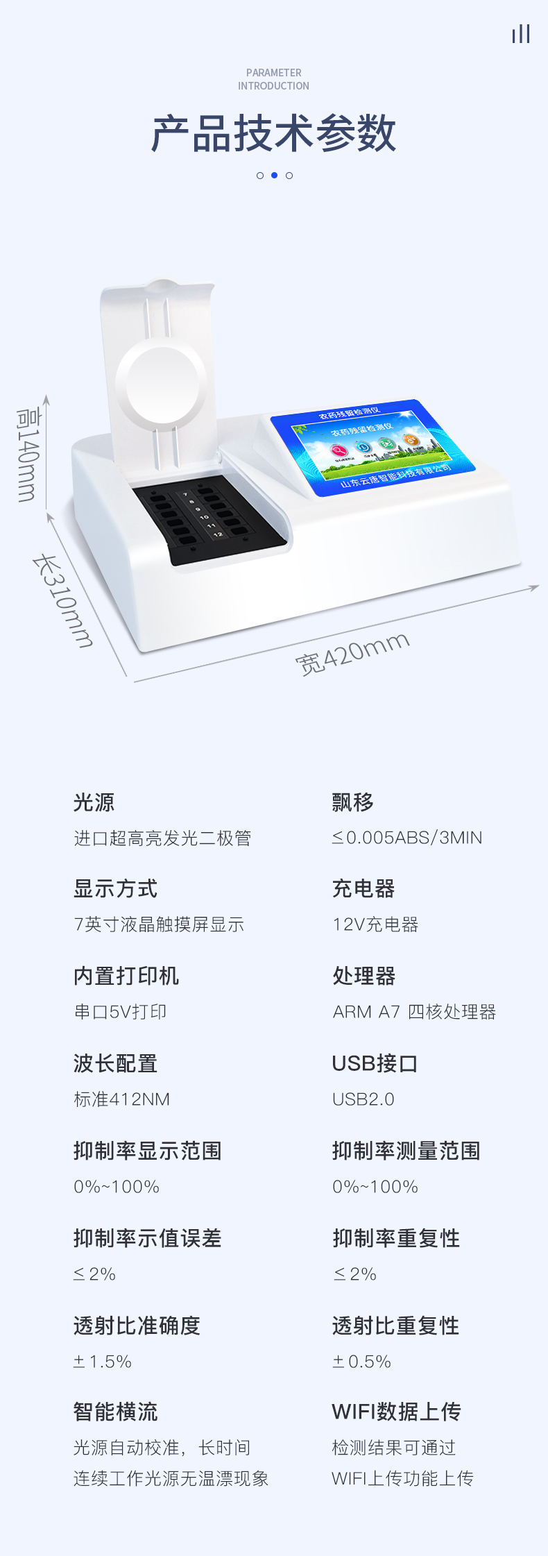 9、智能恒流穩壓,光強自動校準,長時間連續工作光源無溫漂現象。