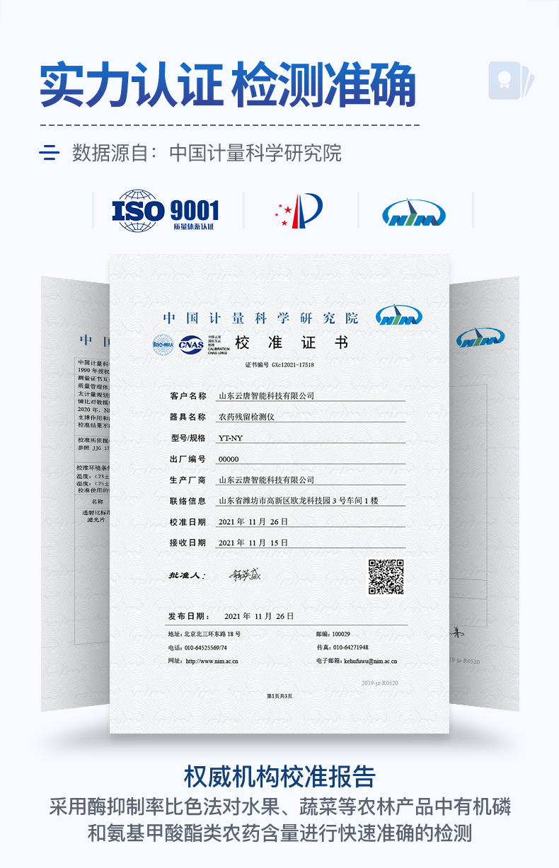 山東云唐智能科技有限公司生產(chǎn)的農(nóng)藥殘留檢測儀廣泛應(yīng)用于主要用于蔬菜、水果、茶葉、糧食、農(nóng)副產(chǎn)品等食品中農(nóng)藥殘留的快速檢測,依據(jù)國標(biāo)GB/T5009.199-2003進(jìn)行檢測,適用于果蔬茶生產(chǎn)基地以及農(nóng)貿(mào)批發(fā)銷售市場現(xiàn)場檢測,餐館、學(xué)校、食堂、家庭果蔬加工前的安全速測等。