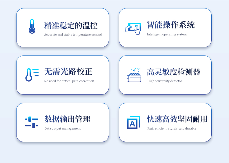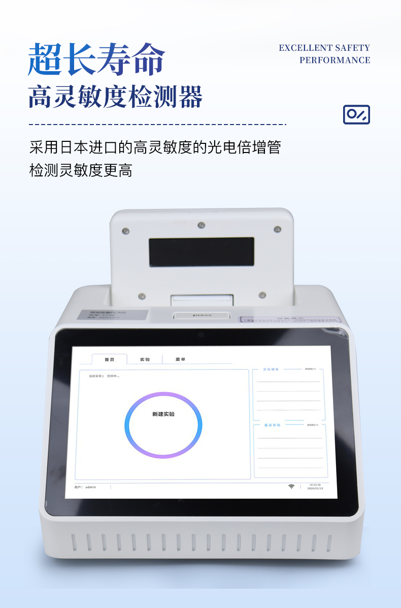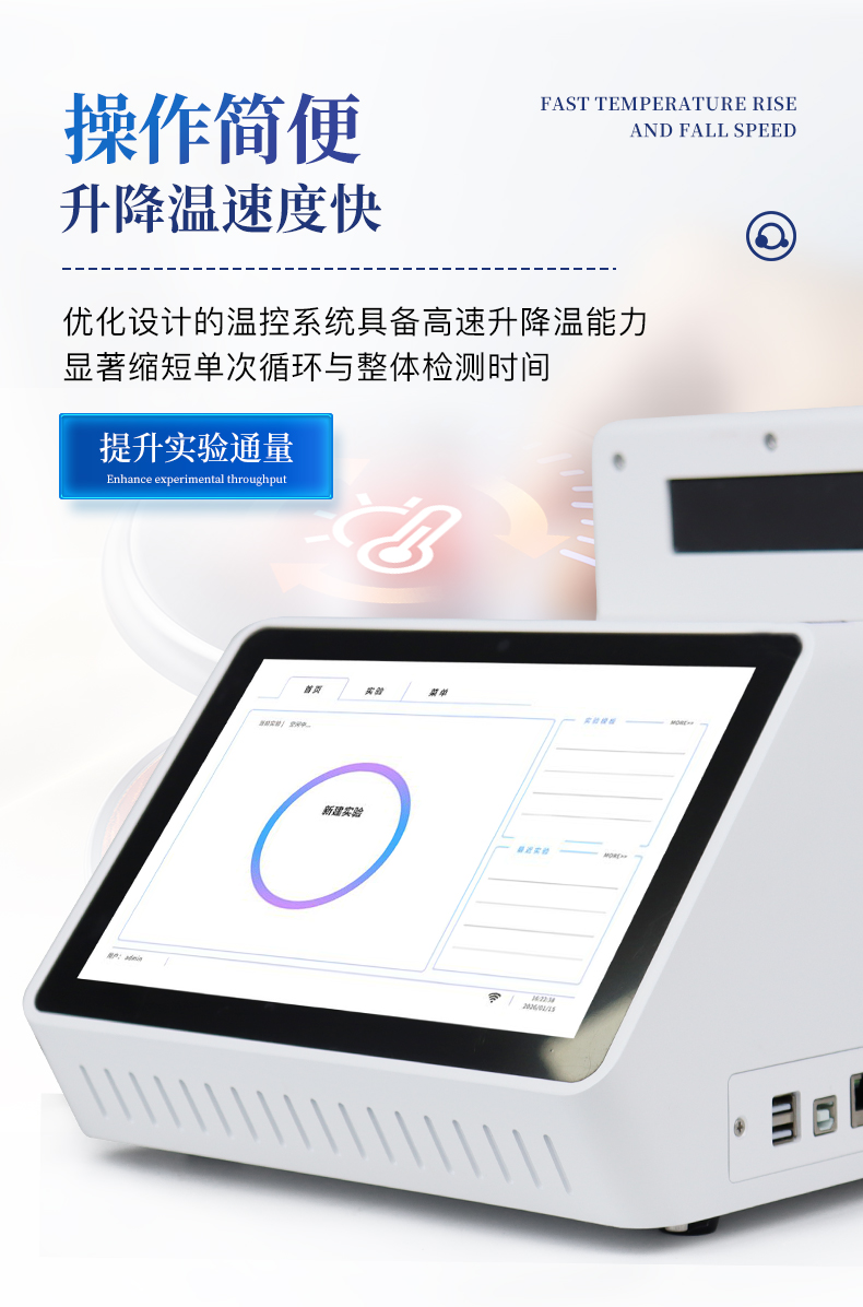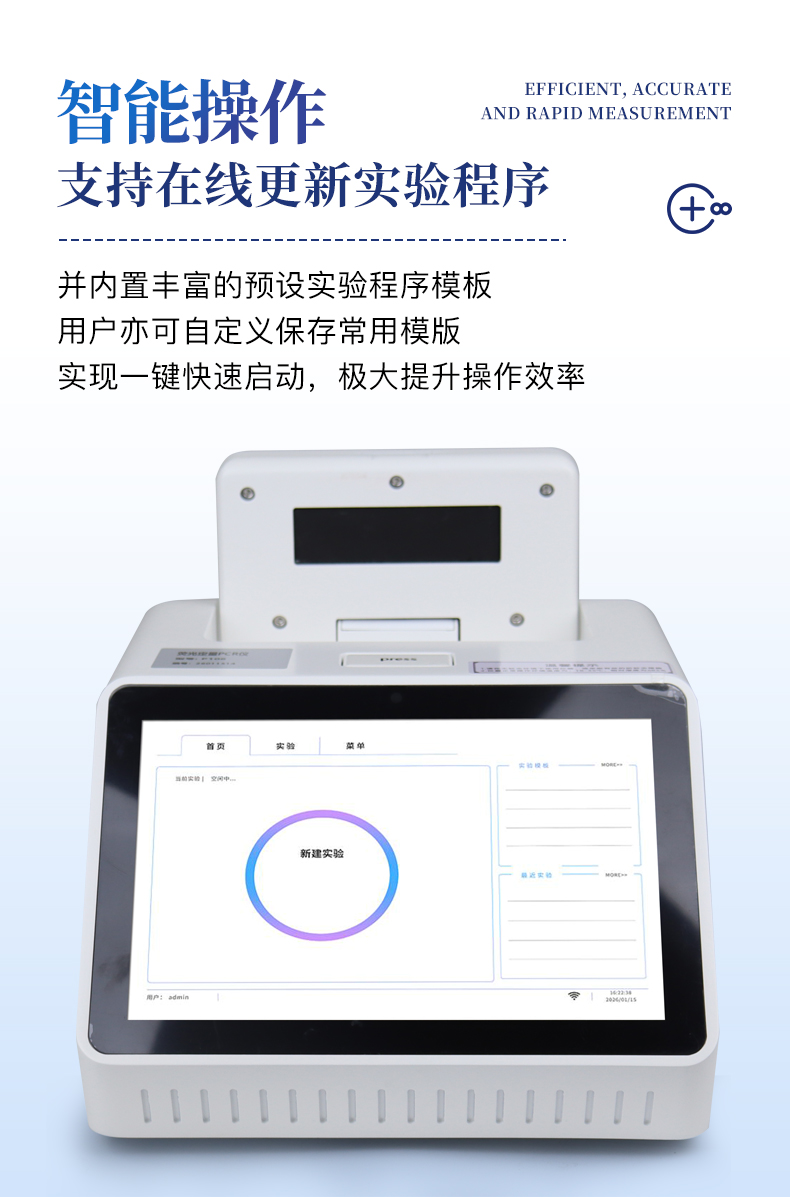 | 1.智能操作系統(tǒng),實驗盡在掌握 | A程序更新與預(yù)設(shè):支持在線更新實驗程序,并內(nèi)置豐富的預(yù)設(shè)實驗程序模板,用戶亦可自定義保存常用模版,實現(xiàn)一鍵快速啟動,極大提升操作效率。 | B操作簡單:無論是觸摸屏界面還是電腦軟件,均設(shè)計得直觀易懂,新用戶也能快速上手。預(yù)置常用程序模板,進一步簡化操作流程。 | 2.精準(zhǔn)穩(wěn)定的溫控與光學(xué)核心 | A長久精準(zhǔn)的溫控系統(tǒng):采用進口***TEC半導(dǎo)體制冷模塊,控溫精準(zhǔn)(±0.1°C),孔間溫度均勻性**(≤±0.3°C)。系統(tǒng)穩(wěn)定性卓越,長期使用性能衰減小,校準(zhǔn)周期長達數(shù)年,顯著降低維護成本與運營中斷。 | B免維護的靈敏光學(xué)系統(tǒng):配備單個獨立LED光源與單個獨立光電二極管檢測器,采用超長壽命進口光源,設(shè)計壽命期內(nèi)免維護,無需額外校準(zhǔn)或更換,保障檢測結(jié)果長期一致性與高靈敏度。 | C卓越的數(shù)據(jù)質(zhì)量:實驗線性相關(guān)性高(R2≥0.999),重復(fù)性優(yōu)異(孔間CV值低),確保定量結(jié)果準(zhǔn)確可靠,數(shù)據(jù)置信度高。 | 3.**便捷的數(shù)據(jù)與輸出管理 | A多重數(shù)據(jù)導(dǎo)出方式:支持通過USB存儲設(shè)備直接拷貝,或經(jīng)由Wi-Fi無線網(wǎng)絡(luò)傳輸數(shù)據(jù)至本地服務(wù)器或云端,方便靈活,滿足各類實驗室數(shù)據(jù)管理習(xí)慣。 | B豐富的報告導(dǎo)出與打印:支持生成并導(dǎo)出多種格式(如PDF、Excel)的實驗報告。儀器兼容USB熱敏打印機、藍牙無線打印機及常規(guī)A4打印機,可直接在儀器上或通過電腦一鍵導(dǎo)出并打印專業(yè)報告,便于結(jié)果存檔與即時分享。 | 4.快速**與堅固耐用 | A升降溫速度快:優(yōu)化設(shè)計的溫控系統(tǒng)具備高速升降溫能力,顯著縮短單次循環(huán)與整體檢測時間,提升實驗通量。 | B超長使用壽命:核心部件均選用工業(yè)級耐用材料與設(shè)計,整機運行穩(wěn)定可靠,致力于為用戶提供長久的投資回報。 |
