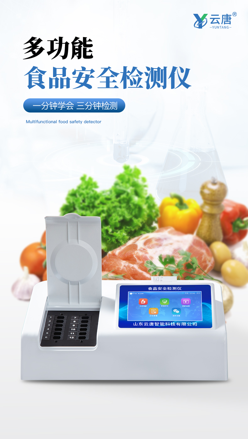 | 安卓智能操作系統(tǒng),采用更加**和人性化操作,儀器具有網(wǎng)線連接、wifi聯(lián)網(wǎng)上傳、GPRS無線遠傳功能,快速上傳數(shù)據(jù)。 | 智能化程度高,儀器具有自檢功能:具有開機自檢和調(diào)零功能,具有自動檢測重復性功能。 | 檢測通道:≥12個檢測通道,可以同時測試多個樣品,每個樣品由程序控制分別獨立工作,不會互相干擾。 | 顯示方式:≥8英寸液晶觸摸屏顯示,人性化中文操作界面,讀數(shù)直觀、簡單。 | 配備新一代嵌入式熱敏打印機,可選擇手動打印或者自動打印,檢測完成可自動打印檢測報告和二維碼。 | 光源采用進口超高亮發(fā)光二極管,高精度、穩(wěn)定性強、光源可控、可以關掉不使用的光源,功耗更低。 | 采用USB2.0接口設計,方便數(shù)據(jù)的存貯和移動,并可隨時與計算機直接相連,并且可用計算機控制儀器。實現(xiàn)數(shù)據(jù)查詢、瀏覽、分析、統(tǒng)計、打印等。 | 儀器帶有監(jiān)管平臺。數(shù)據(jù)可局域網(wǎng)和互聯(lián)網(wǎng)數(shù)據(jù)上傳,檢測結果直接傳至食品安全監(jiān)管平臺。進行區(qū)域食品安全監(jiān)管及大數(shù)據(jù)分析處理,檢測區(qū)域食品安全長短期動態(tài),達到食品安全問題預估、預警 | 一體化便攜式快檢設備,滿足現(xiàn)場及流動檢測使用需求,能夠在同一軟件下實現(xiàn)所有檢測項目的檢測,并可通過同一窗口直觀顯示檢測結果。 | 儀器具有多品類多種類樣品菜單庫,可靈活選擇檢測樣品,不同的檢測通道可同時檢測不同的樣品項目。也可在儀器上直接編輯錄入樣品名稱、檢測指標、送檢單位等信息并保存進樣品數(shù)據(jù)庫。 | 樣品處理簡單省力,整體操作快速、安全、便捷。 | 儀器具有自身保護功能,可設置用戶名及密碼,防止非工作人員操作等。 | 高靈敏度,高檢測精度,高重復性精度,掃描式高精度光學傳感器。 | 儀器具有重新校準、鎖定、恢復出廠設置功能。 | 支持U盤存儲。 結果判定線可修改,對照值標定值可保存,斷電不丟失數(shù)據(jù)。 |