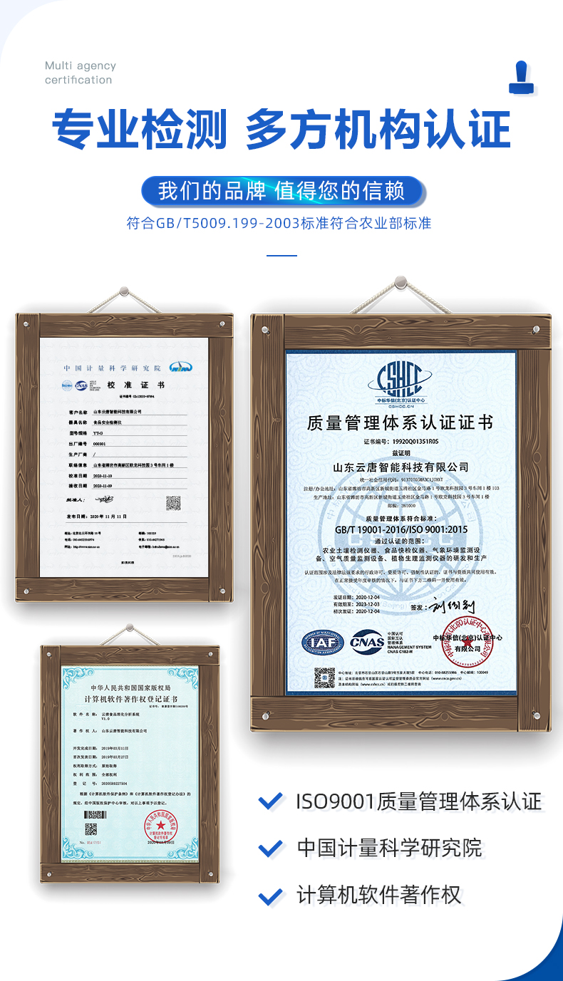 山東云唐智能科技有限公司生產的高智能食品安全檢測儀為集成化食品安全快速檢測分析設備,采用臺式一體化設計,可快速檢測200多種食品安全項目,包含非食用化學物質、濫用食品添加劑、農藥殘留、獸藥殘留、重金屬、病害肉、營養強化劑、抗生素類殘留、激素類殘留、真菌毒素類殘留、化學類殘留等項目的定性定量檢測。該高智能食品安全檢測儀為集成化食品安全快速檢測分析設備,目前已于食藥監局、衛生部門、高教院校、科研院所、農業部門、養殖場、屠宰場、食品肉產品深加工企業及檢驗檢疫部門等單位廣泛使用。