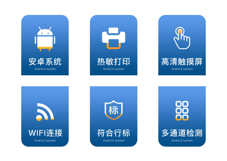| 安卓智能操作系統,采用更加**和人性化操作,儀器具有網線連接、wifi聯網上傳、GPRS無線遠傳功能,快速上傳數據。 | 智能化程度高,儀器具有自檢功能:具有開機自檢和調零功能,具有自動檢測重復性功能。 | 檢測通道:≥12個檢測通道,可以同時測試多個樣品,每個樣品由程序控制分別獨立工作,不會互相干擾。 | 顯示方式:≥8英寸液晶觸摸屏顯示,人性化中文操作界面,讀數直觀、簡單。 | 配備新一代嵌入式熱敏打印機,可選擇手動打印或者自動打印,檢測完成可自動打印檢測報告和二維碼。 | 光源采用進口超高亮發光二極管,高精度、穩定性強、光源可控、可以關掉不使用的光源,功耗更低。 | 采用USB2.0接口設計,方便數據的存貯和移動,并可隨時與計算機直接相連,并且可用計算機控制儀器。實現數據查詢、瀏覽、分析、統計、打印等。 | 儀器帶有監管平臺。數據可局域網和互聯網數據上傳,檢測結果直接傳至食品安全監管平臺。進行區域食品安全監管及大數據分析處理,檢測區域食品安全長短期動態,達到食品安全問題預估、預警 | 一體化便攜式快檢設備,滿足現場及流動檢測使用需求,能夠在同一軟件下實現所有檢測項目的檢測,并可通過同一窗口直觀顯示檢測結果。 | 儀器具有多品類多種類樣品菜單庫,可靈活選擇檢測樣品,不同的檢測通道可同時檢測不同的樣品項目。也可在儀器上直接編輯錄入樣品名稱、檢測指標、送檢單位等信息并保存進樣品數據庫。 | 樣品處理簡單省力,整體操作快速、安全、便捷。 | 儀器具有自身保護功能,可設置用戶名及密碼,防止非工作人員操作等。 | 高靈敏度,高檢測精度,高重復性精度,掃描式高精度光學傳感器。 | 儀器具有重新校準、鎖定、恢復出廠設置功能。 | 支持U盤存儲。 結果判定線可修改,對照值標定值可保存,斷電不丟失數據。 |