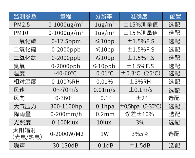 YT-WQX12型十二要素微氣象儀也叫大氣污染環境監測儀是山東風途物聯網科技有限公司針對目前環保形式日益嚴峻的情況下研發的針對PM2.5、PM10、CO、SO2、NO2、O3六項污染物參數以及空氣溫度、空氣濕度、風速、風向、大氣壓力以及光學雨量共計12項參數進行監測的高集成度儀器。功能主要是對空氣中的常規污染因子和氣象輔助參數進行24小時連續在線的監測,將分析出的數據提供給環保局作為空氣質量好壞參考,并輔助環保決策。另外,可選配硫化氫、揮發性有機污染物、日照輻射、噪聲等。