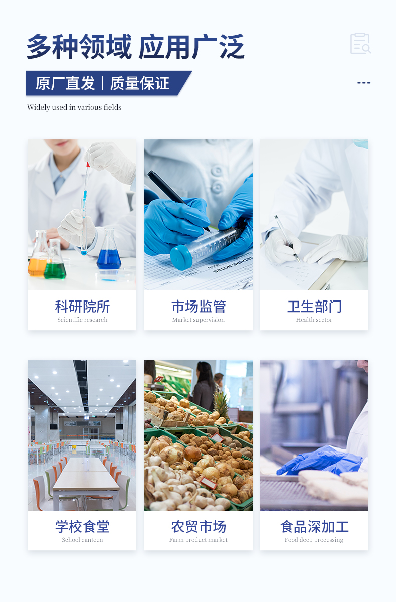 5、具有多個(gè)食品安全檢測項(xiàng)目,開放平臺(tái),可以增減檢測項(xiàng)目。