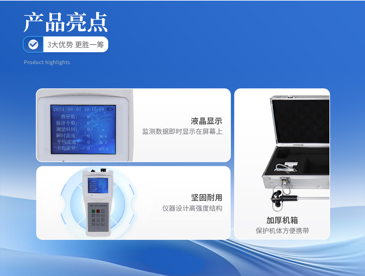 LS300-B型便攜式流速流量儀(簡稱便攜式流速儀)是專門為水文站、廠礦、環保監測站、農田排灌、水文地質調查等部門在野外進行明渠流速流量測量而研制的。