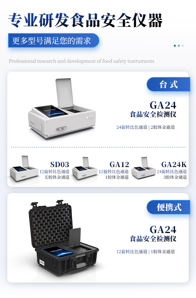 | 1. 功能構成:主要包括分光光度模塊、新型農殘檢測模塊、膠體金檢測模塊、熒光檢測模塊、數字化管理模塊等,所有模塊集成一體,可快速檢測200多種食品安全項目,如獸藥殘留、農藥殘留、非法添加劑、細菌數值等指標。 | 2. 檢測樣品種類:餐具及廚房用品、瓜果蔬菜及其制品、水產品及其制品、畜禽產品及其制品、嬰幼兒乳品及奶粉制品、蜂蜜、糧油及其制品、調味品(食醋、醬油、味精、鹽等)、酒類茶葉及其制品、食用菌、飲料、蛋類藥物殘留(雞蛋,鴨蛋等)、米豆面制品、糖果糕點類(小食品)、薯類及膨化食品、瓶(桶)裝飲用水、添加食用色素的食品、使用添加劑的食品、含有有毒有害物質的相關食品。 | 3、顯示屏幕:儀器采用15.6英寸液晶觸摸屏顯,搭配運行安卓智能操作系統,主控芯片采用ARM Cortex-A7,RK3288/4核處理器,主頻1.88Ghz,操作方便,性能更強。 | 4、供電模式:儀器交直流兩用,直流12V供電,可連接車載電源,配18ah大容量充電鋰電池,電量可實時顯示,無外部電源條件下可持續工作至少 4 小時。 | 5、檢測通道:≥24通道;采用精密旋轉比色池設計,使用同芯片同光源校準精度,解決不同光源之間的誤差值,更加準確**,采用高精度進口四波長冷光源,每個通道均配置 410、520、590、630nm 波長光源,標配**的光路切換裝置,專利光路切換功能可實現64波長,并且所有檢測項目可實現所有通道同時檢測. | 6、通訊接口:配備無線通信模塊、4G(APN)通訊模塊、藍牙傳輸,同時具有雙USB接口以及RJ45網線接口,可以多方式實現數據保存及數據傳輸。 | 7、存儲方式:支持U盤存儲,兩個標準USB接口,免驅動安裝。檢測結果存儲容量20萬條以上,可生成Excel表格進行拷貝,并具有登錄保護功能。 | 8、操作系統:儀器可在同一檢測界面自動對應相關檢測通道,一次性選擇不少于11個樣品名稱,無需退出界面,節省操作時間。并可以對每個通道屬性和樣品信息單獨進行編輯,例如送檢單位、人員,檢測人員等,打印時勾選打印顯示。 | 9、數據集成系統:設備首頁自動匯總分析檢測數據,包含:周檢測數據、月檢測數據,全部檢測總數量,包含檢測總數,合格數,不合格數,以及相關柱形分析圖,各項檢測數據一目了然,無需電腦查詢,更加快捷直觀。 | 10、數據庫系統:十幾項數據庫分類管理儀器:包含項目類型、項目數據、檢測數據、歷史記錄、國標信息、曲線信息、采樣信息、檢測信息、受檢信息、復核信息、圖表信息、光源校準信息、打印樣式信息、樣品庫信息等等,數據庫之間互相協調聯動保證數據的真實完整性。同時產品數據庫以及歷史檢測記錄支持一鍵檢索功能。 | 11、限量規判系統:具有限量查詢、添加物質合規判定系統。檢測出結果后,系統自動調用系統數據庫中相關國標進行比對判定,客觀顯示判定結果是否合格。 | 12、項目預設系統:儀器具有任務預設模塊,一鍵提前預設,給出方便快捷的新檢測方案,每一個任務分別可以設置不同的樣品、批次、編號、來源、備注、抽樣信息、檢測信息、受檢信息、復核信息等更多信息。樣品送檢時一鍵調取保存信息,并可多次調取,適用于大批量檢測業務,可以大大提高檢測效率。 | 13、數據監管系統:同步對接監管平臺,數據可局域網和互聯網數據上傳,檢測結果可直接傳至食品安全監管平臺。進行區域食品安全監管及大數據分析處理與數據統計,監測區域食品安全長短期動態及問題預估、預警。 | 14.1、全新打印系統:內置全新打印機,新創自定義打印方式,可按需靈活勾選控制:產品合格證(國家農業部標準要求),二維碼,抽樣信息、檢測信息,受檢信息、復核信息、抽樣日期、檢測日期等信息的打印。 | 14.2、A4紙版本報告打印功能:設備擁有兩種結果展示方式,可以自動生成A4打印模板和小票打印模板兩種樣式,可通過WiFi及網線等方式連接外置打印機可進行打印。 | 15、膠體金檢測模塊:采用單通道CMOS成像處理技術及膠體金免疫層析技術,可讀取膠體金卡數據,自動采集、處理分析,將檢測結果顯示,并可根據參考限值自動判斷檢測結果,可檢測常見的獸藥殘留、生物毒素、抗生素、違禁添加物等。 | 15.1、可即時檢測單聯卡及三聯卡; | 15.2、檢測通道:2個通道; | 15.3、檢測方式:消線法和比色法; | 15.4、顯示模式:陰性或陽性; | 15.5、曲線形式:插入式掃描方式,顯示金標卡圖像,實時生成、識別CT曲線圖,無需手動調整。兼容市場上其他金標卡,使用耗材不受限制。 | 16、熒光檢測模塊:快速檢測水質中微生物、固體物細菌含量。利用“熒光素酶—熒光素體系”快速檢測三磷酸腺苷(ATP)。以ATP含量表明樣品中微生物與其他生物殘余得多少,用于判斷衛生狀況。 適用于食品、餐具、手、液體等表面及水質潔凈度的檢測。 | 16.1、檢測通道:雙通道 檢測精度:********** | 16.2、檢測范圍:0 to 99999 RLU | 16.3、檢測時間:15 秒 | 16.4、檢測干擾:±5﹪或±5 RLU | 16.5、操作溫度范圍:5℃到 40℃ | 16.6、操作濕度范圍:20—85﹪ | 16.7、開機 30 秒自檢、內置自校光源、自動判斷合格與不合格、自動統計合格率 。 | 17、儀器具備遠程升級功能,可定向分客戶分儀器更新,開機后自動更新,并可持續性免費更新系統版本,無需像傳統產品返廠更新,節省時間及人力成本并避免了物流運輸返廠升級導致設備損壞的潛在風險。 |