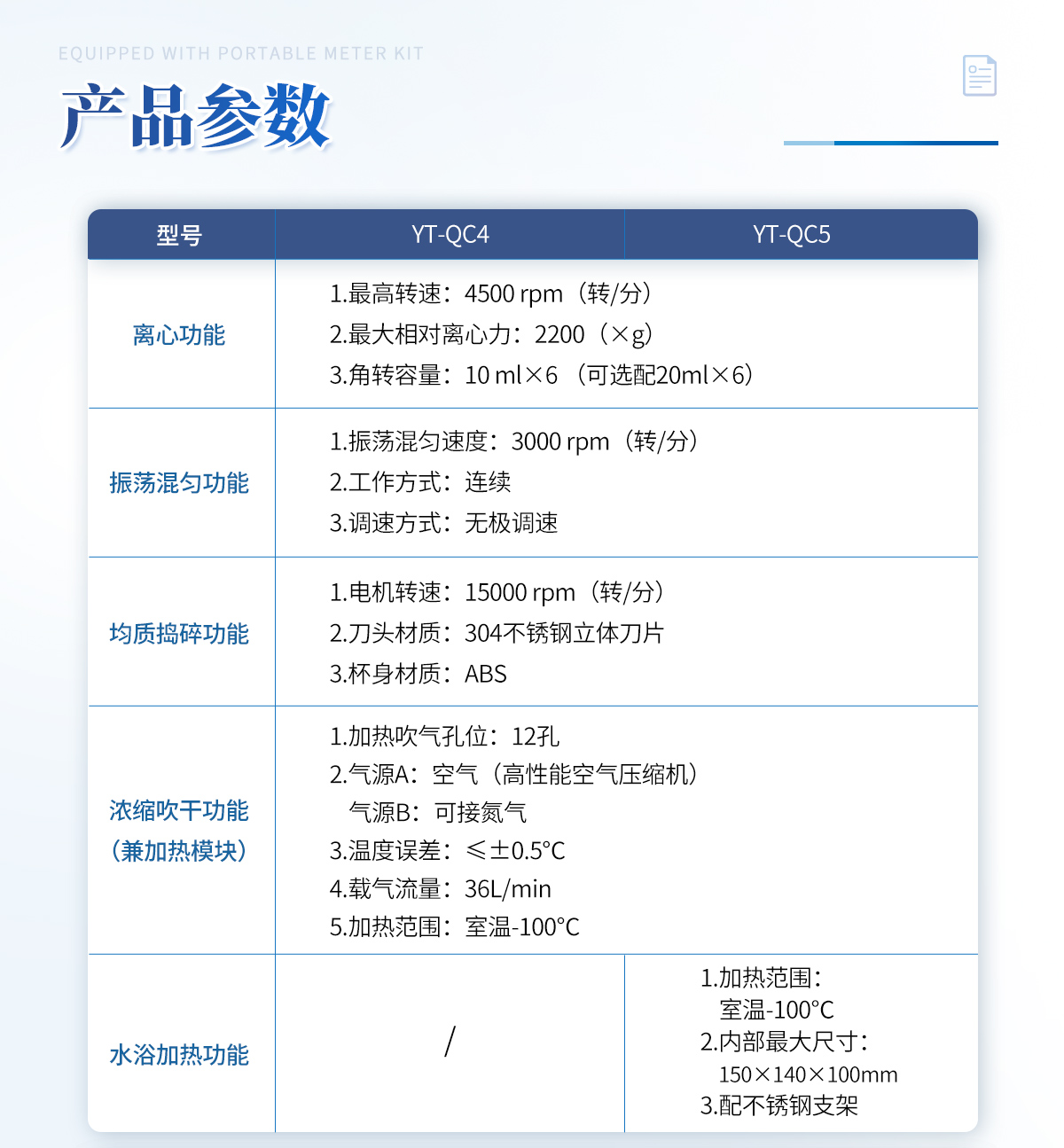 應(yīng)國內(nèi)用戶的實際需求,自行研制開發(fā)的新型儀器——QC05型樣品前處理一體機。樣品前處理集成箱將樣本前處理過程中樣品濃縮、水浴恒溫、離心分層、均質(zhì)、振蕩混勻等步驟所需設(shè)備進行集成,僅需一臺樣品前處理集成箱設(shè)備即可完成所有樣本前處理過程,并且方便攜帶,不僅適用于現(xiàn)場檢測使用,還可用于色譜、質(zhì)譜等分析樣品的純化和制備。