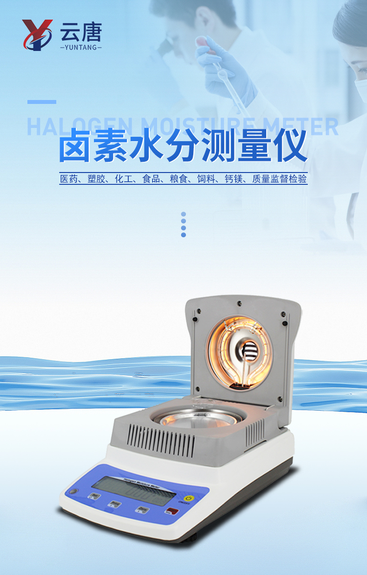 可廣泛應用于一切需要快速測定水分的行業,如醫藥,糧食、飼料、種子,菜籽,脫水蔬菜、煙草,化工,茶葉,食品、肉類以及紡織,農林、造紙、橡膠、塑膠、紡織等行業中的實驗室與生產過程中。同時滿足固體、顆粒、粉末、膠狀體及液體含水率的測定要求