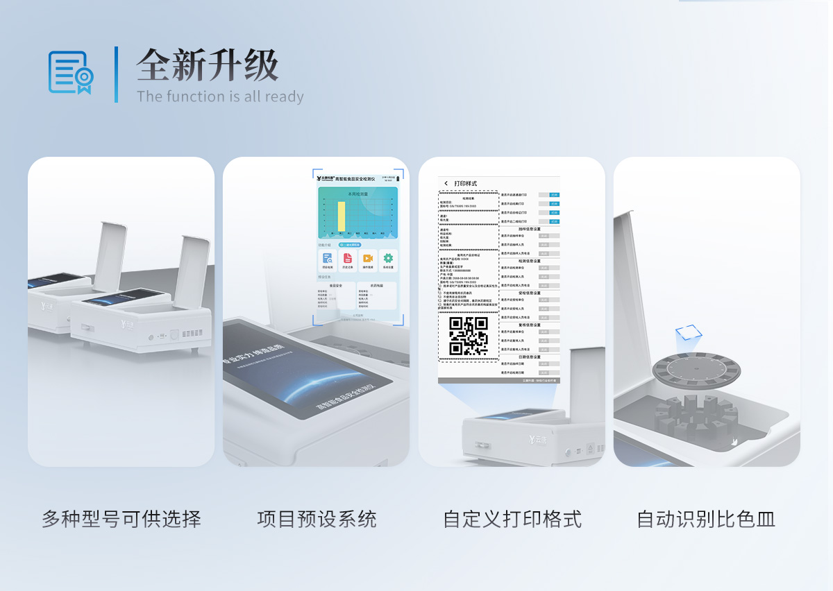 | 儀器采用臺式一體化系統(tǒng)檢測技術(shù),將分光光度模塊、新型農(nóng)殘檢測模塊、數(shù)字化管理模塊、無線通訊模塊高度集成于一體,支持檢測200種食品安全檢測項目,同時預(yù)留升級檢測方法。 | 儀器檢測模塊標(biāo)準(zhǔn)化、智能化,可隨意自由組合。檢測箱體內(nèi)置多個標(biāo)準(zhǔn)檢測單元,檢測模塊可以調(diào)整配置。 | 儀器采用全新安卓智能系統(tǒng),主控芯片采用 ARM Cortex-A7,RK3288/4核處理器,10.1寸高清液晶觸摸豎屏,更加**的UI交互界面,運轉(zhuǎn)快捷;儀器配備無線通信模塊: 4G(APN)通訊模塊、Wifi模塊,藍牙傳輸,同時具有雙USB接口以及RJ45接口能以多種方式實現(xiàn)數(shù)據(jù)保存和數(shù)據(jù)傳輸功能。 | 創(chuàng)新檢測模式: | ★檢測通道:≥12通道;采用精密旋轉(zhuǎn)比色池設(shè)計,使用同芯片同光源校準(zhǔn)精度,解決不同光源之間的誤差值。1-12通道間誤差0.1%。(***:**202022821055.2) | ★儀器具有自動識別比色皿檢測功能,即:將樣品比色皿放入儀器后,點擊樣品檢測,儀器自動識別比色皿進行通道檢測。 | 進口高精光源: | 高精度進口四波長冷光源,通道配置 410、520、590、630nm 波長光源,一個光源芯片驅(qū)動一個光源,誤差極小,每臺設(shè)備單獨**校準(zhǔn)光源,**比對,同時參照四種不同波段光源全方位覆蓋市面上99%的農(nóng)殘食品項目檢測。 | 智能化操作系統(tǒng): | 便捷操作系統(tǒng):設(shè)備檢測時可在同一檢測界面自動對應(yīng)相關(guān)檢測通道一次性選擇1-12個樣品名稱,無須退出界面,節(jié)省操作時間。 | 數(shù)據(jù)集成系統(tǒng):設(shè)備首頁自動統(tǒng)計檢測數(shù)據(jù)包含:周檢測數(shù)據(jù)、月檢測數(shù)據(jù),全部檢測總數(shù)量,均包含檢測總數(shù),合格數(shù),不合格數(shù),以及相關(guān)柱形分析圖,對各項檢測數(shù)據(jù)清晰掌握,無需電腦查詢,更加快捷直觀。 | 項目預(yù)設(shè)系統(tǒng):支持添加單個及多個相同或不相同的任務(wù)預(yù)設(shè),一鍵快速調(diào)取,每一個任務(wù)分別可以設(shè)置不同的樣品、批次、編號、來源、備注、抽樣信息、檢測信息、受檢信息、復(fù)核信息等更多信息。無縫鏈接平臺和APP實時查看下發(fā)任務(wù)。 | 數(shù)據(jù)監(jiān)管系統(tǒng):同步對接監(jiān)管平臺,數(shù)據(jù)可局域網(wǎng)和互聯(lián)網(wǎng)數(shù)據(jù)上傳,檢測結(jié)果可選擇直接傳至食品安全監(jiān)管平臺。集成OSS輸出存儲服務(wù)、區(qū)分設(shè)備定向管理應(yīng)用,進行區(qū)域食品安全監(jiān)管及大數(shù)據(jù)分析處理與數(shù)據(jù)統(tǒng)計,檢測區(qū)域食品安全長短期動態(tài),達到食品安全問題預(yù)估、預(yù)警。 | 自定義打印系統(tǒng):內(nèi)置全新打印系統(tǒng),新創(chuàng)自定義打印方式,可按需靈活設(shè)置開啟或關(guān)閉:產(chǎn)品合格證(國家農(nóng)業(yè)部標(biāo)準(zhǔn)要求),二維碼,抽樣信息、檢測信息,受檢信息、復(fù)核信息、抽樣日期、檢測日期等信息的打印。 | 系統(tǒng)遠(yuǎn)程更新功能:可定向分客戶分儀器更新系統(tǒng),按照不同客戶后期實際需求添加項目,無需機器返廠,即可遠(yuǎn)程實時升級全新系統(tǒng),節(jié)省時間成本及避免運輸造成設(shè)備損壞。 | 儀器主機采用一體化防水、抗壓、防撞擊、防腐蝕箱體設(shè)計,同時配備交直流供電,可連接車載電源,可選配大容量充電鋰電池,滿足現(xiàn)場野外檢測需求。 | 安全證書,放心保障:儀器具有中國計量科學(xué)研究院校準(zhǔn)證書,權(quán)威認(rèn)證。 |