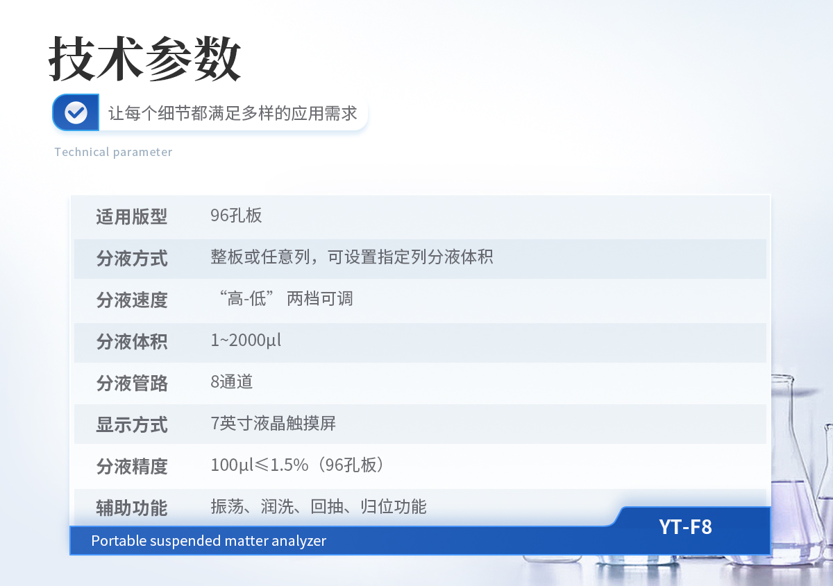 | 適用版型:96孔板 | 分液方式:整板或任意列,可設置指定列分液體積 | 分液速度:“高-低” 兩檔可調 | 分液體積:1~2000μl | 分液管路:8通道 | 顯示方式:7英寸液晶觸摸屏 | 分液精度:100μl≤1.5%(96孔板) | 輔助功能:振蕩、潤洗、回抽、歸位功能 |