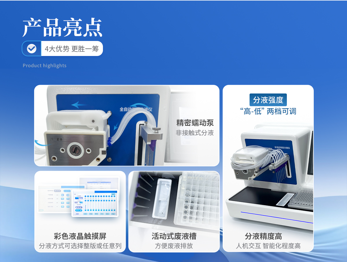 全自動微量分液儀(以下簡稱“分液儀”)是一種配備高精度蠕動泵的分液設備,能夠快速、**、一致的完成自動化分液操作。可廣泛應用于疾控篩查、食品檢測、動物檢疫、生命科學研究等領域。解放實驗員雙手,在提**率的同時避免錯誤。