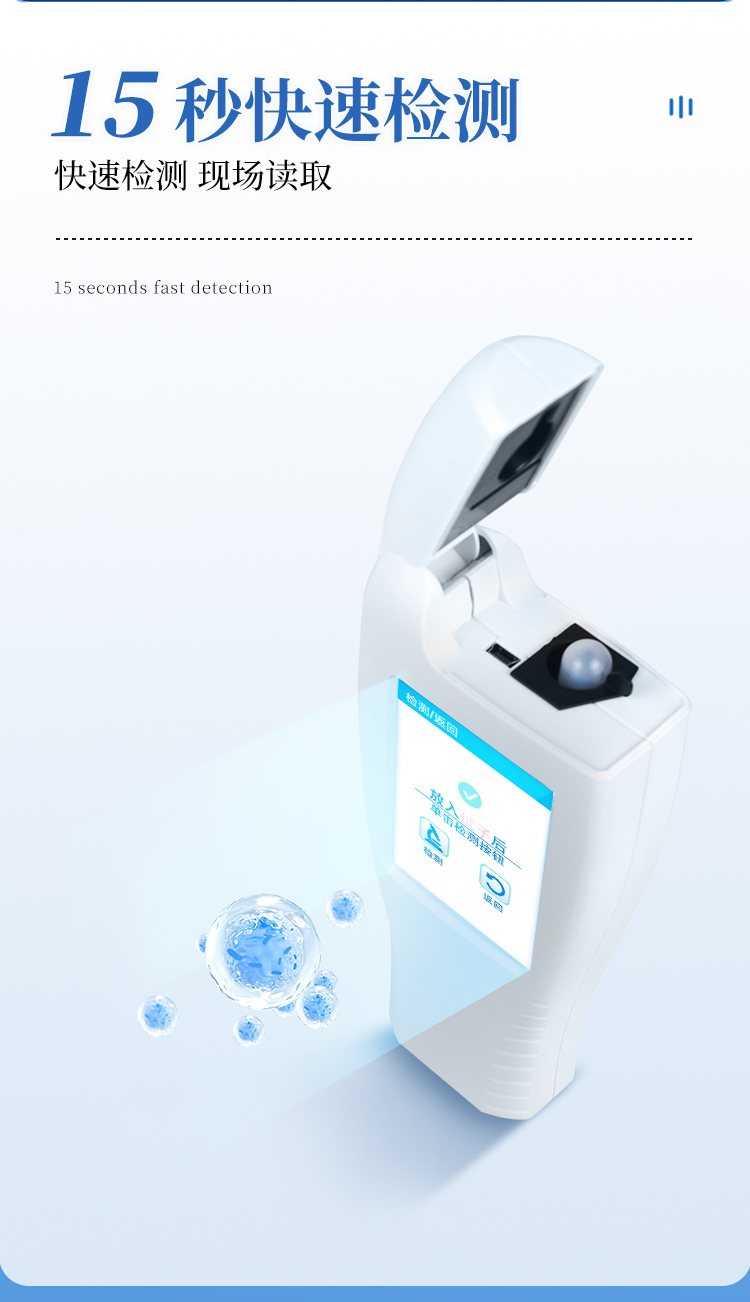 該儀器可快速檢測各種水質中微生物、細菌含量。設備為全新升級產品,大屏幕觸摸顯示屏,代替傳統按鍵。操作采用生物化學反應方法檢測ATP含量,ATP熒光檢測儀基于螢火蟲發光原理,利用“熒光素酶—熒光素體系”快速檢測三磷酸腺苷(ATP)。ATP拭子含有可以裂解細胞膜的試劑,能將細胞內ATP釋放出來,與試劑中含有的特異性酶發生反應,產生光,再用熒光照度計檢測發光值,微生物的數量與發光值成正比,由于所有生物活細胞中含有恒量的ATP,所以ATP含量可以清晰地表明樣品中微生物與其他生物殘余的多少,用于判斷衛生狀況。