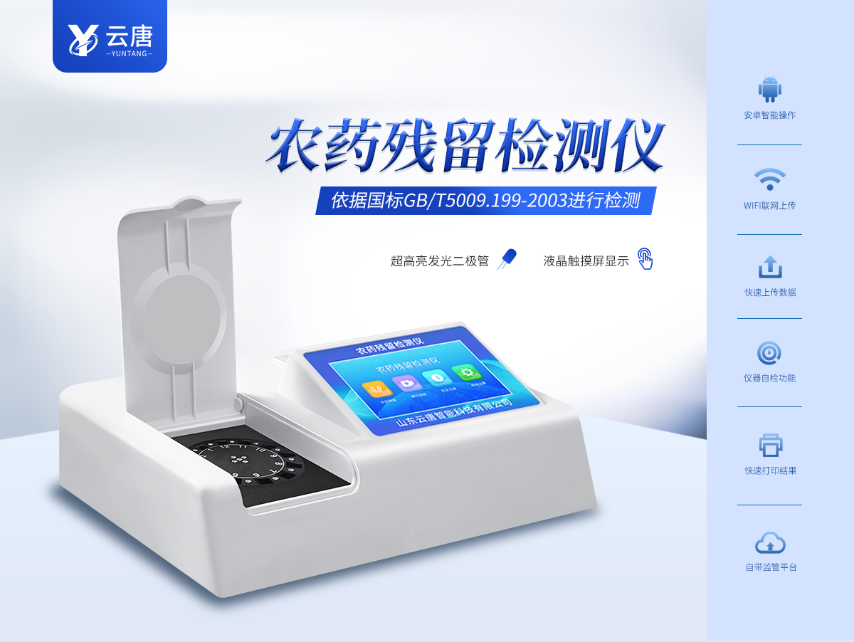 山東云唐智能科技有限公司生產(chǎn)的農(nóng)藥殘留檢測(cè)儀廣泛應(yīng)用于主要用于蔬菜、水果、茶葉、糧食、農(nóng)副產(chǎn)品等食品中農(nóng)藥殘留的快速檢測(cè),依據(jù)國(guó)標(biāo)GB/T5009.199-2003進(jìn)行檢測(cè),適用于果蔬茶生產(chǎn)基地以及農(nóng)貿(mào)批發(fā)銷售市場(chǎng)現(xiàn)場(chǎng)檢測(cè),餐館、學(xué)校、食堂、家庭果蔬加工前的安全速測(cè)等。