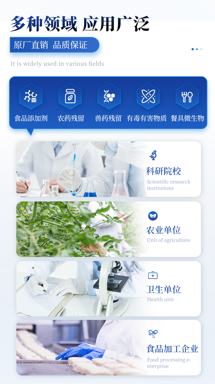 該高智能食品安全檢測(cè)儀為集成化食品安全快速檢測(cè)分析設(shè)備,目前已于食藥監(jiān)局、衛(wèi)生部門(mén)、高教院校、科研院所、農(nóng)業(yè)部門(mén)、養(yǎng)殖場(chǎng)、屠宰場(chǎng)、食品肉產(chǎn)品深加工企業(yè)及檢驗(yàn)檢疫部門(mén)等單位廣泛使用。