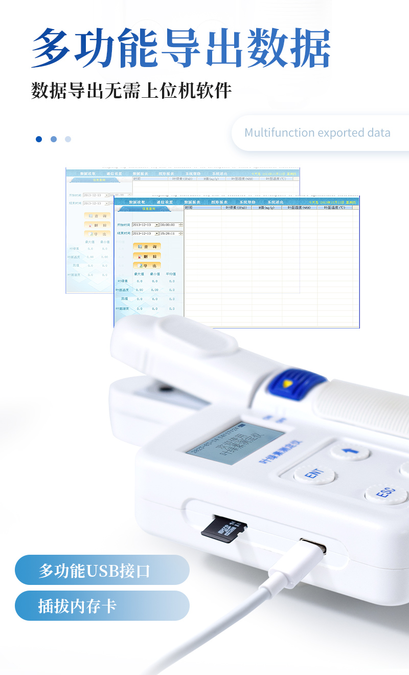 5.多功能USB接口,可實現(xiàn)數(shù)據(jù)導出與充電功能,可將儀器與電腦直接聯(lián)機,數(shù)據(jù)導出無需上位機軟件,還可選擇使用內存卡直接導出數(shù)據(jù),操作簡單方便