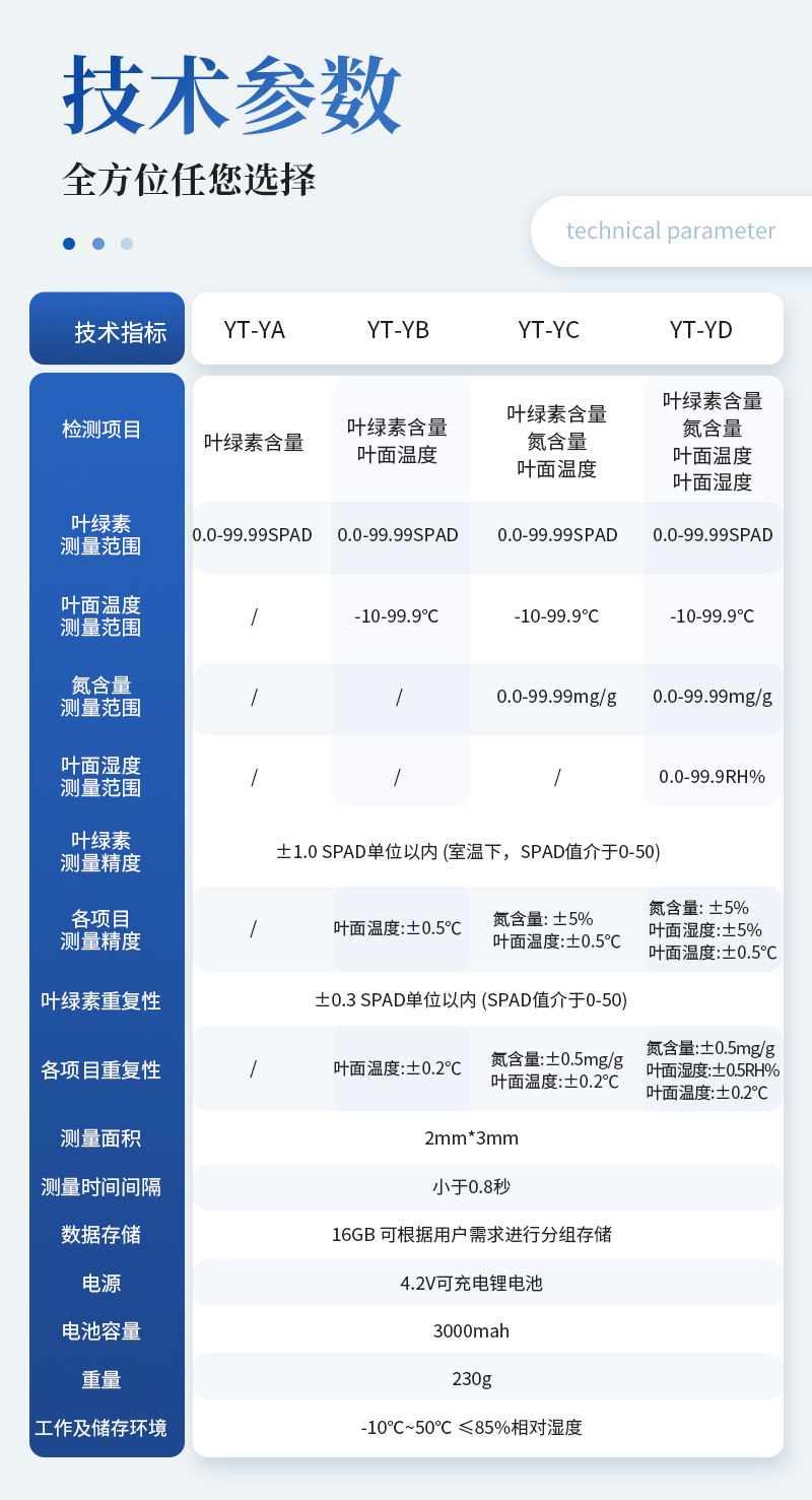 氮含量:±0.5mg/g 葉面濕度:±0.5RH% 葉面溫度:±0.2℃